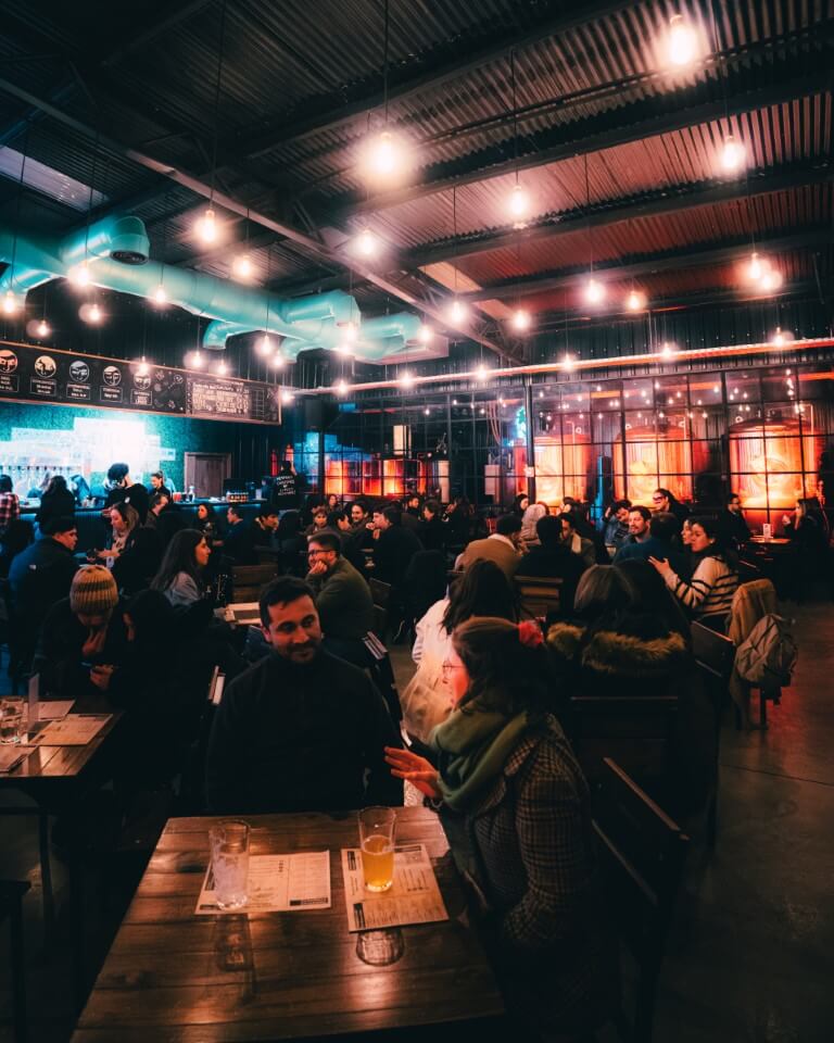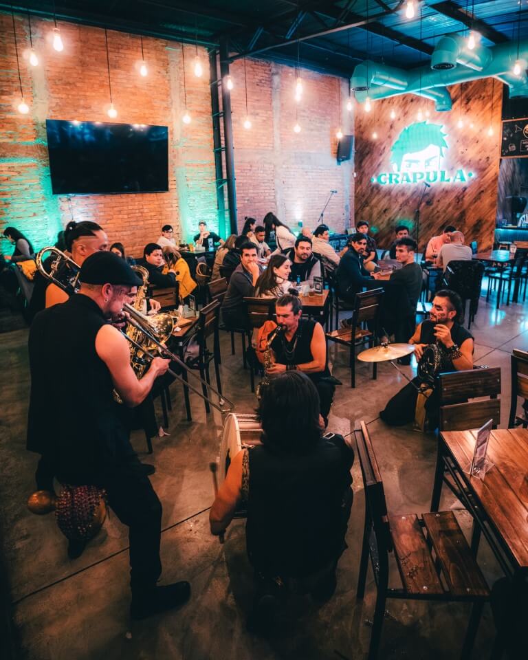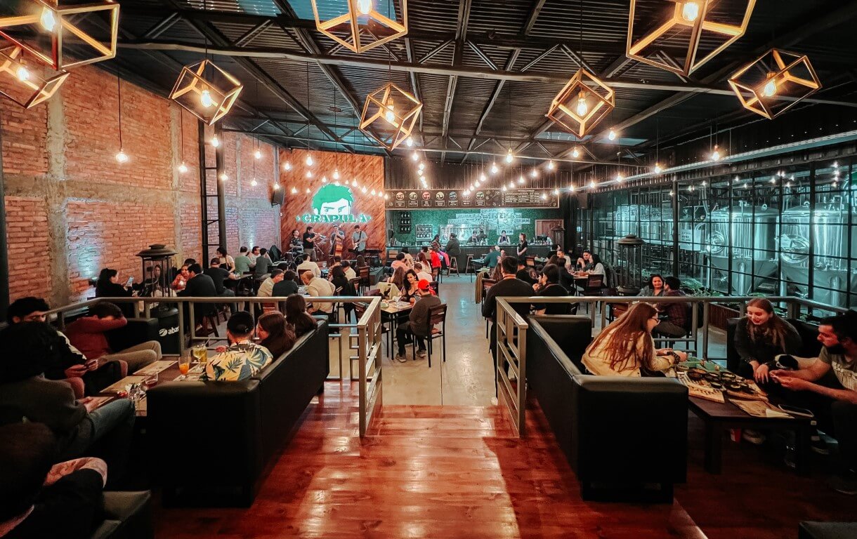 Acá se toma cerveza propia, premiada nacional e internacionalmente, mientras la música marca el pulso de la noche.